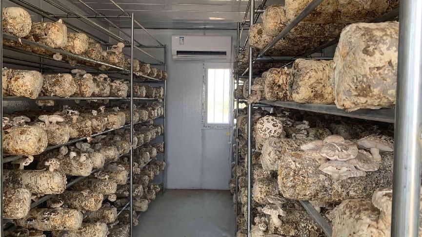 恒温恒湿的移动方舱容积42立方米,800个菌袋规整摆放,丰满的花菇散发着浓郁香气。